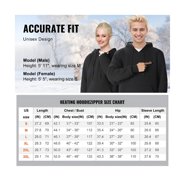 PolarWear’s unisex heated hoodie is designed for everyone, with sizes ranging from S to 3XL for a comfortable, true-to-size fit. Whether you prefer a relaxed or snug look, you’ll find your ideal size that moves with you and keeps you warm without bulk. Available in classic tones that pair effortlessly with any winter style because warmth should always look as good as it feels.